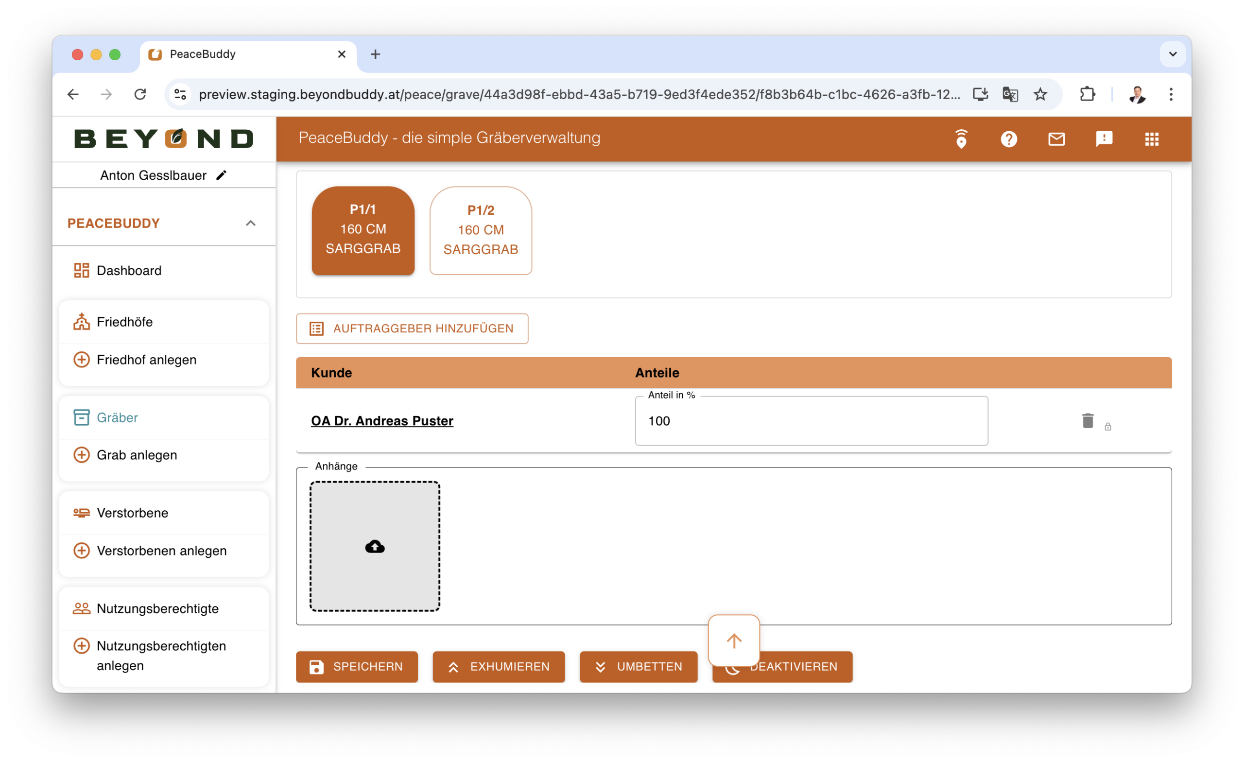 Grabdaten, Nutzungsrechte und Verknüpfungen werden zentral gepflegt und bleiben jederzeit nachvollziehbar.